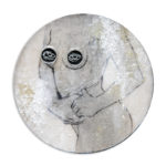 3×3 Mixed Media drawing with mirror eyes in a 6×6 frame