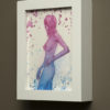 A figure in acrylic ink on 5×7 inch watercolor paper, framed.