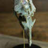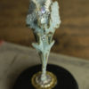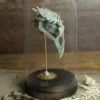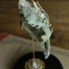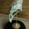 Hand-beaded, hand dyed wool Hawk skull with, crushed glass & brass under glass dome