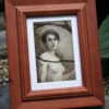 The painting is 4 x 6 inches, oil on ACM panel (archival aluminum panel, favored by conservators), matted to 5 x 7 inches and framed in a solid wood frame with a soft rubbed finish. The frame’s outer dimensions are 10 3/8 x 8 3/8 x 3/4 inch deep.