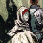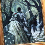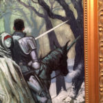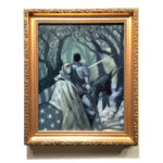 “Guide” is an oil painting on wood panel, inspired by the Fae and knights errant. This is the first oil painting by Elliot for 2016, presented in a salvaged gold frame.