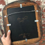 Oil on panel, black vintage frame with gold inner trim. The frame has a few worn spots which give character to the theme.