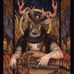 Outside of his freelance work, he has been slowly but surely been illustrating his own tarot deck. The Courtly Beasts Tarot- along with a good deal of Matthew’s other personal work- depicts a fantastical world populated by anthropomorphic animals in elaborate costume, set within lush environments both botanical and architectural.