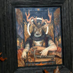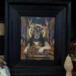 He works primarily in ink, watercolor and gouache (often embellished with metal leaf), creating pieces inspired by folklore, history, and nature.