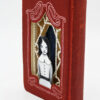Back of book has sewn in publication year and creation year, hand made book hanger that allows for leveling