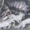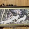 12.2″ by 6.3″ sumi ink and watercolor on Arches watercolor paper. Fully matted and framed. The Frame is 13.7″ by 7.8″ The frame includes glass, but is not shown in the picture.