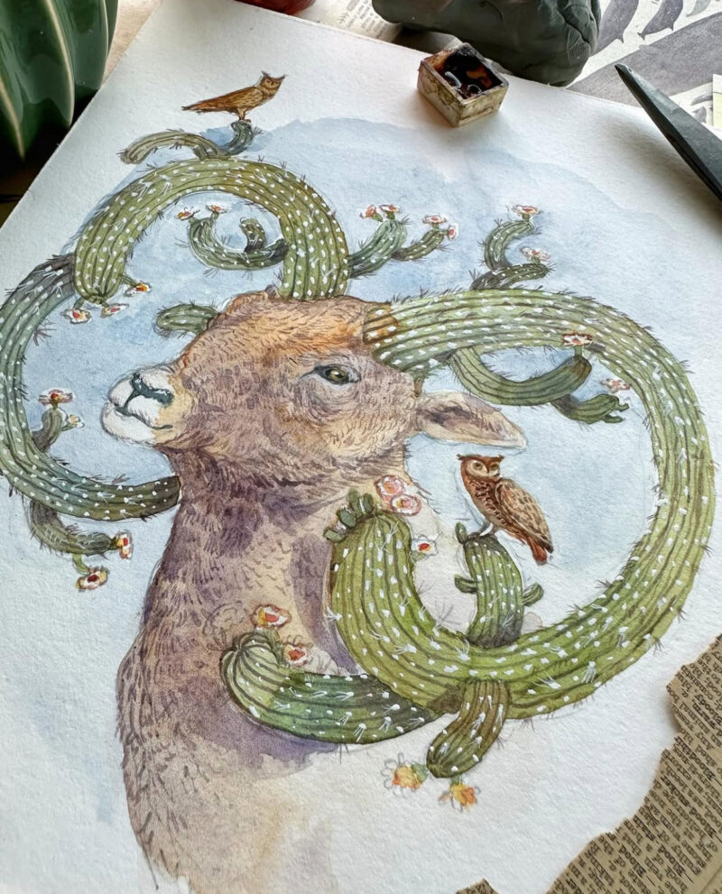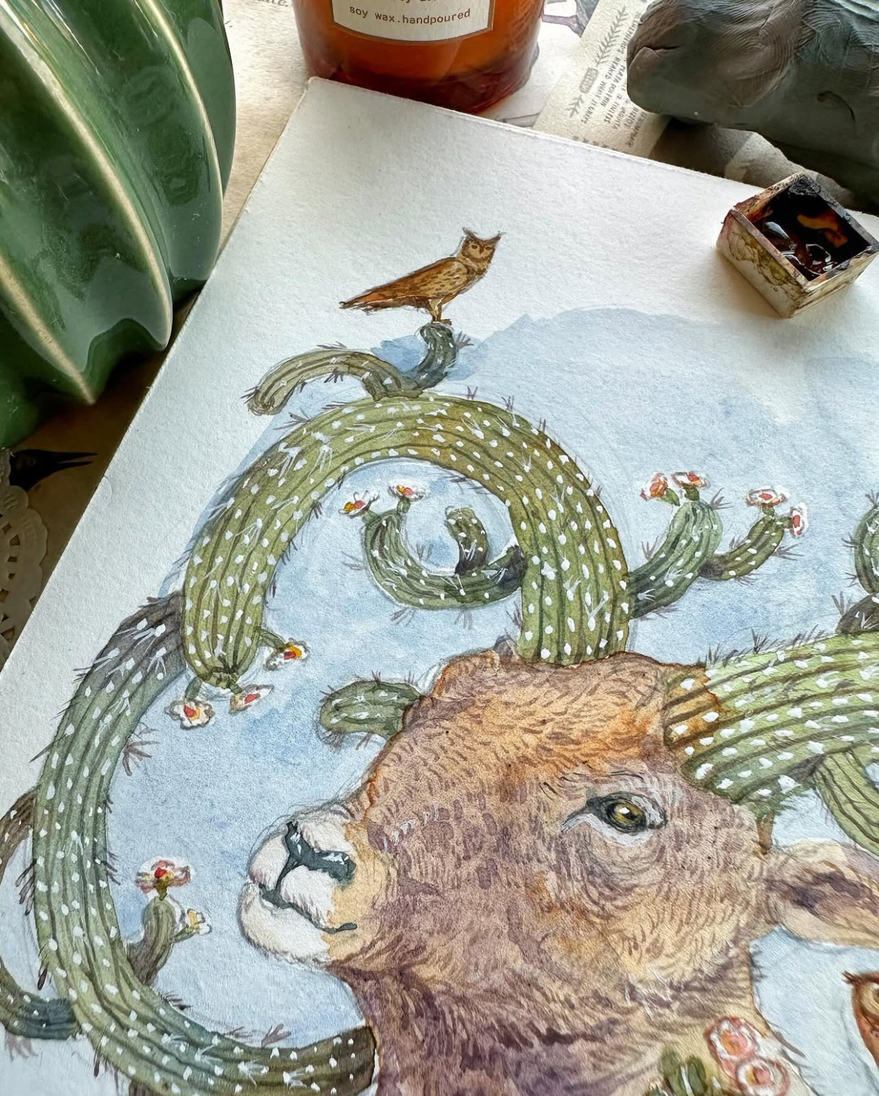 A celebration of resilience, adaptation, and quiet wildness, Horns of the High Desert draws from the strange beauty of desert life. It’s a piece that invites you to see strength in softness, whimsy in the wild, and wonder in the unexpected—perfect for those who find magic in nature’s contradictions.