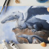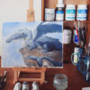 The acrylic painting for this one uses more expressive brushwork to show the texture of the Humpback.