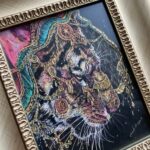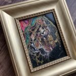 Using oil pastel and scratching method, her works is detailed and fulled with the powerful colors.