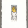 “Ignis” is a tiny hand-pulled drypoint intaglio etching. It is part of a very small edition (number 2 of 14), and no two prints in the edition are identical. Furthermore, it has been made truly one-of-a-kind for Every Day Original with the addition of a gentle wash of warm golden-yellow watercolor over the flame, and hints of graphite wash in the shadows. No other prints in the edition have these extra touches.