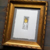 Tiny is no jest: the printed image is only 2 inches high and 3/4 inch wide, and the paper is 3 x 4 inches. It is framed in a 4 x 5 inch antique gilded frame (outer dimensions of the frame are 5 5/8 x 6 5/8 inches). I have photographed it without glass, but will ship it with glass (or plexiglass for safety if the collector prefers), properly spaced away from the artwork so it does not come in contact with the paper.
