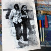 Mixed-media ink drawing of the iconic twist dance contest from Pulp Fiction.