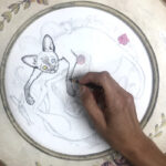 Frame: I found the frame in a vintage shop with the flower pattern on it. The texture was a little aged and rim has some marks/imperfections in places, though I touched it up where I could with paint and added gold trim.