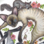 I felt like creating something light and whimsical for this piece. I’ll be using the image for prints and post cards sold in my online shop and traveling art booth. (This piece came with me “in progress” to the last few shows, and guests enjoyed watching me work on it.)