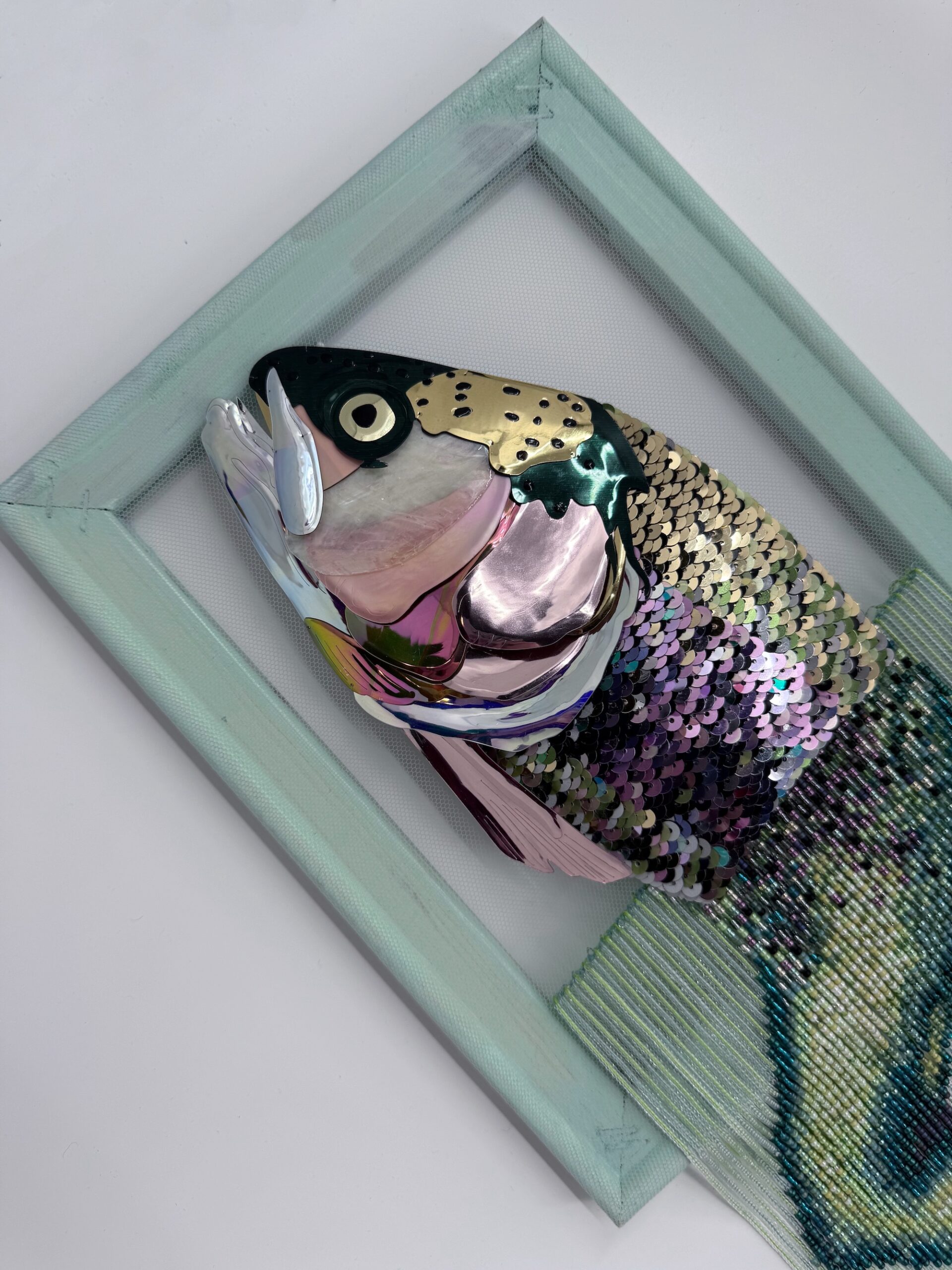 Breeyn is an artist and designer based in Canada. After a decade designing custom couture fashion specializing in traditional hand-embellishment including embroidery and beading, she now creates 3D light-reflective pieces using those same techniques blended with hand-cutting, painting and shaping sequins. She twists natural and supernatural themes, merging science and fairytales to lure the viewer into believing in everyday magic. Flowers, insects, anatomy and mythical creatures are her favourite themes. Bones and bugs.