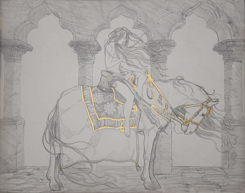 When painting my full piece for “Lady Godiva,” there were many ideas I wanted to try even after that piece succeeded and got shown at Springville Museum of Art’s Spring Salon. However, it still didn’t capture the look and feel I wanted. So began my next foray into tackling the illustration.