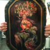 The frame is antique wood with tiny flower embellishments around the edges. The painting is nearly dry so to note, it awaits a varnish to give it that final glow.