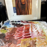 This is a strong and powerful image of Lady Jessica, covered with wraps and jewelry rich with texture that was all too tempting to paint.   Lady Jessica is painted in oil on an Artefex Alcotpanel 513, 8 x 10″