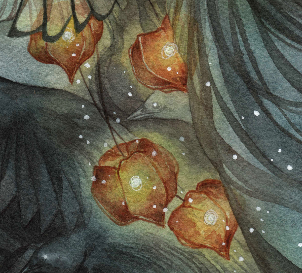 Despite the whispers, despite the hollow blackness, despite the rustling, dark bodies pressing in all around her, she makes the night beautiful.