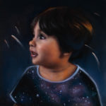 Children are full of wonder, and somewhere along the way to adulthood we lose pieces – fallen out of pockets, or trapped in that tight place behind the couch. Whenever I look up at the night sky I feel I’ve found some hidden on the dark side of the moon or in the starlight shining down on me. This painting is a small piece you can keep with you – a reminder to keep looking.