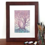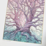 Watercolor & pen on watercolor paper. Finished with fine lines of metallic pink and blue watercolor highlights add to the magical effect.