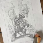 This is a preliminary drawing I did before painting the cover for Gene Wolfe’s The Knight. Gene Wolfe used The Knight to explore classic fantasy tropes — I saw it as my chance to revel in that pageantry and harken back to the works of our golden age illustrators. (I even got to create a whole series of chapter head illustrations for this book.)