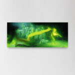From the artist’s private collection, ‘March of the Ignis Fatuus’ is one part from a nine painting series titled, ‘The Lesser Goldfinch’: observing surreality in the late medieval period; following young characters who felt a call to arms, finding purpose through worship, and redeeming themselves amongst absolute ruination. This narrative explores Norse and Celtic mythology, English Magic, and recorded history in medieval lapidaries by interpreting Ethan Hawke’s ‘Rules for a Knight’.