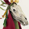 During the Christmas season in Wales, the Mari Lwyd is accompanied by two other characters (often a jester and lady) and goes door to door asking permission through song to enter the house. Those within the house reply with song (in the form of rhymes) and this goes on until one side relents. If the Mari Lwyd gains entry, she and her handlers are given food and drink, and it is said that the household will have good luck for the year.