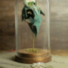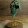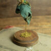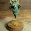 Hand-beaded, hand dyed wool Hawk skull with silk & brass under glass dome