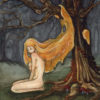 The Subject matter choice is driven by her interest in symbolism, often reflecting conflict inherent to the human condition, as echoed through mythology and folklore. The balance of playful storytelling coupled with deeper-seated significance provides unique yet relatable work. Her pieces evoke a dreamscape-like narrative that pulls in both the eye and mind, presenting space and opportunity for the imagination to wander into a deep narrative that can only be experienced first hand.