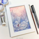 Watercolor & pen on watercolor paper.