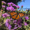 For a brief week or two in September, the monarchs arrive. They’re traveling down to Mexico for the winter. The flowers they seem to like most in my yard are the native Savanna Blazing Star – 5ft massive spikes of bright purple. Only got to see one this year, but she very nicely posed for a while so I could snap a few photos before she went on her way again. I wanted to show how temporary they are, pausing only for a while for a visit.