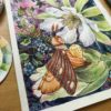 This piece is a part of a small series, and it was inspired by Queen of the Night cactus, and Citheronia Regalis moth. I feel very lucky to have these bloom so close to my house. I’ve been sneaking out at night to take peek at those gorgeous blossoms.
