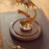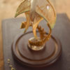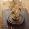 Displayed under 9″h glass dome on wood base.
