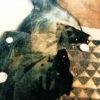 Mixed media collage on board. 7.5 x1 0.5 inches