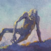 This painting is a revisit of a sketch I made many years ago. At the time, I was doing a lot of very realistic zombies for my day job, really playing up the fleshy, grotesque side- with all the research that went into that. This piece was something of a reaction against what had started to feel like nihilistic work. I wanted to take the same subject and find a more beautiful, poetic side, and I landed on a theme of weariness and rest.