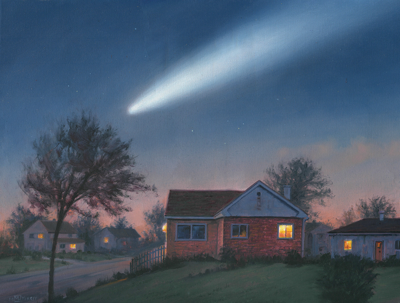 A visitor from afar blazes a trail across the night sky as we little humans slumber on our lonely planet. Please note that I will be away from home until May 6 so if anybody wishes to buy it please note that I can only ship during the week after that date.