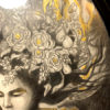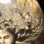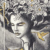 Original drawing, embellished with gold paint on the hummingbirds, flames and floral details. It has a shine in the light.