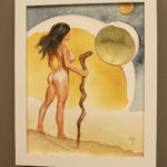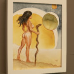 An 8 x 10 inch figurative fantasy piece, in watercolor and gouache. With a handsome white wood frame.