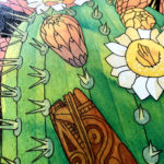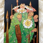 The Nine of Wands is a card about strength in reserve, and biding one’s time to ensure success. I picked the saguaro cactus to represent this because they flourish in desolate environments, with a deep tap root and wide network of secondary roots, and symbolize resourcefulness and patience. In addition to being its own reservoir of water, the flowers of the saguaro attract many pollinators through out the desert.