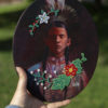 Acrylic painting combined with hand-sewn traditional style Ojibwe Native American beadwork.
