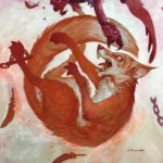 This piece is a prequel to a larger work. It is Acrylic Ink and Acryla Gouache on gessoed panel. It is culmination of three things I love. Linear art. Silhouette. And painterly passages. It is 9X12 and ships in the frame shown.