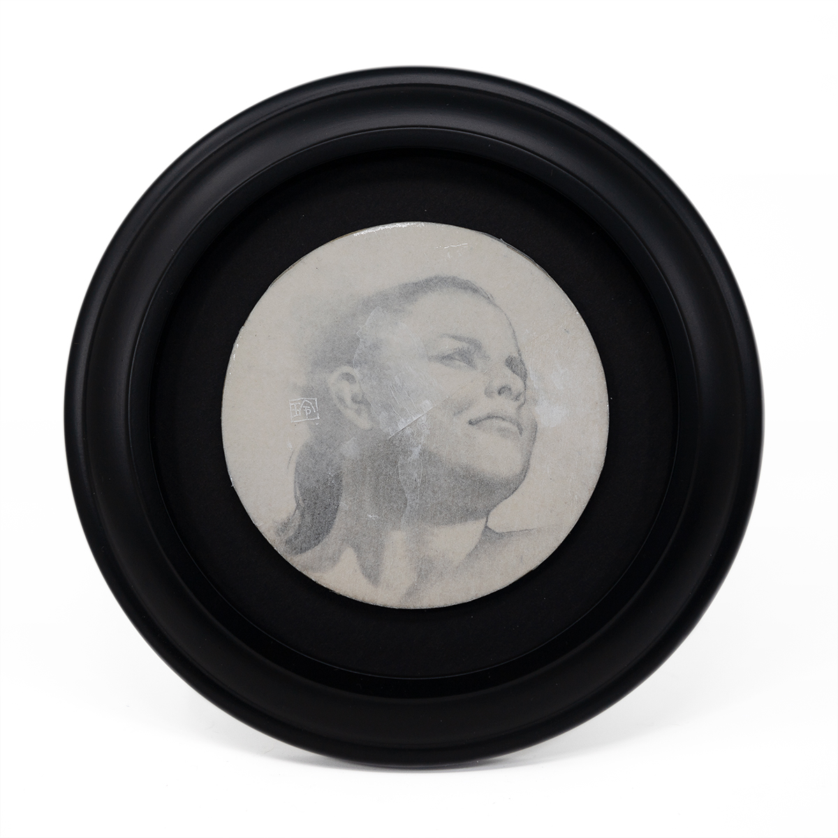 4 inch x 4 inch graphite mixed media in an approx. 7.5 inch x 7.5 inch frame