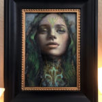 oil on collage on board, 5×7″ (framed – 8×10″)
