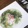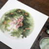 She is painted in watercolor on Arches cold press paper and roughly measures 8″x8″. She comes matted.