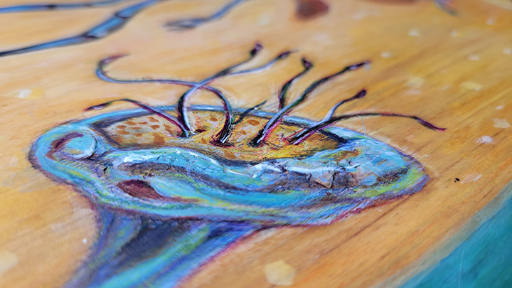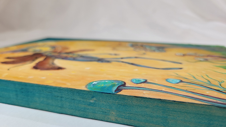 Mixed media – textured illustration/ painting on wood.