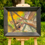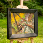 “Pipe Dreaming, Farley” is an original oil painting, 15″x11,” oil on stretched canvas, and mounted in a rustic black wood frame