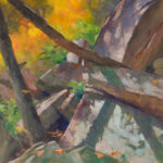 I keep finding myself returning to Farley. Not just because it has some of the best climbing in New England, but also because it has history for me. Farley is where I met some of my best friends when I was brand-new to the area, and just getting over the sadness of leaving home behind. It’s where I re-started my painting practice, and a place I return to when it feels like the well is running dry. And of course Pipe Dreams itself (as the rock is named), is simply one of the most beautiful pieces of stone I’ve ever seen. It’s funny, but every time I paint it, I feel like there’s something new to learn, a new way of describing it’s texture, the way the light reflects into it as it juts into the sky.