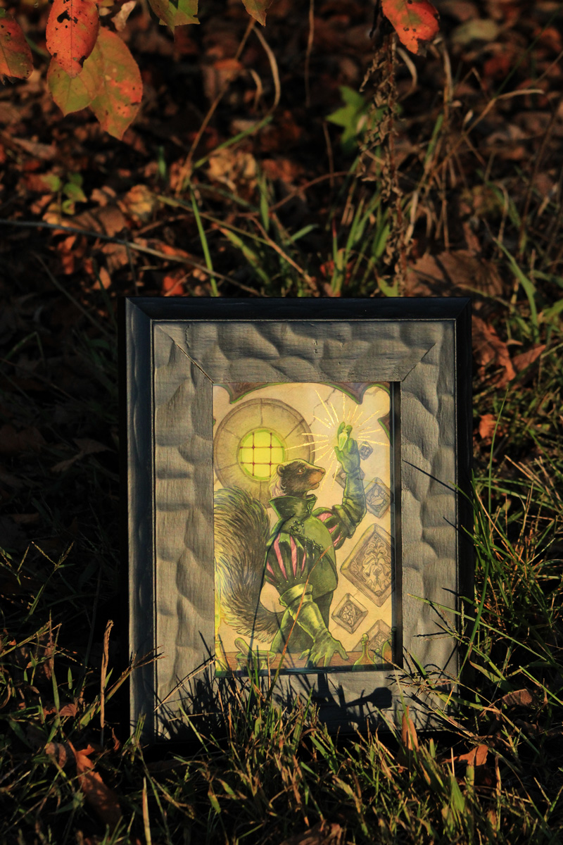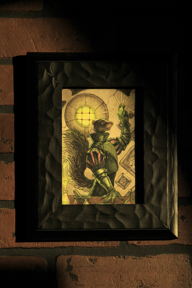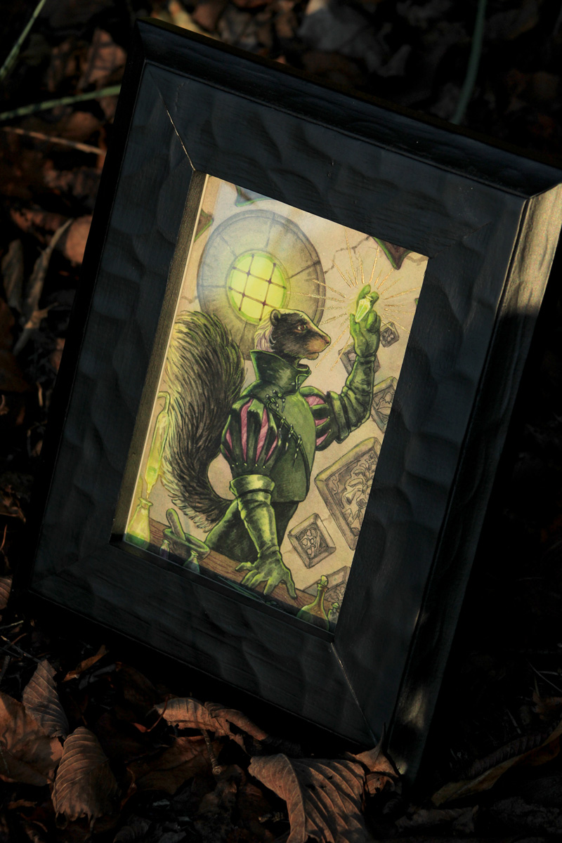 Outside of his freelance work, he has been slowly but surely been illustrating his own tarot deck. The Courtly Beasts Tarot- along with a good deal of Matthew’s other personal work- depicts a fantastical world populated by anthropomorphic animals in elaborate costume, set within lush environments both botanical and architectural.