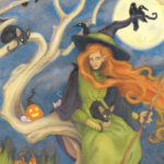 Just in time for Halloween! The Pumpkin Witch, with her fur and feather familiars gathered round.